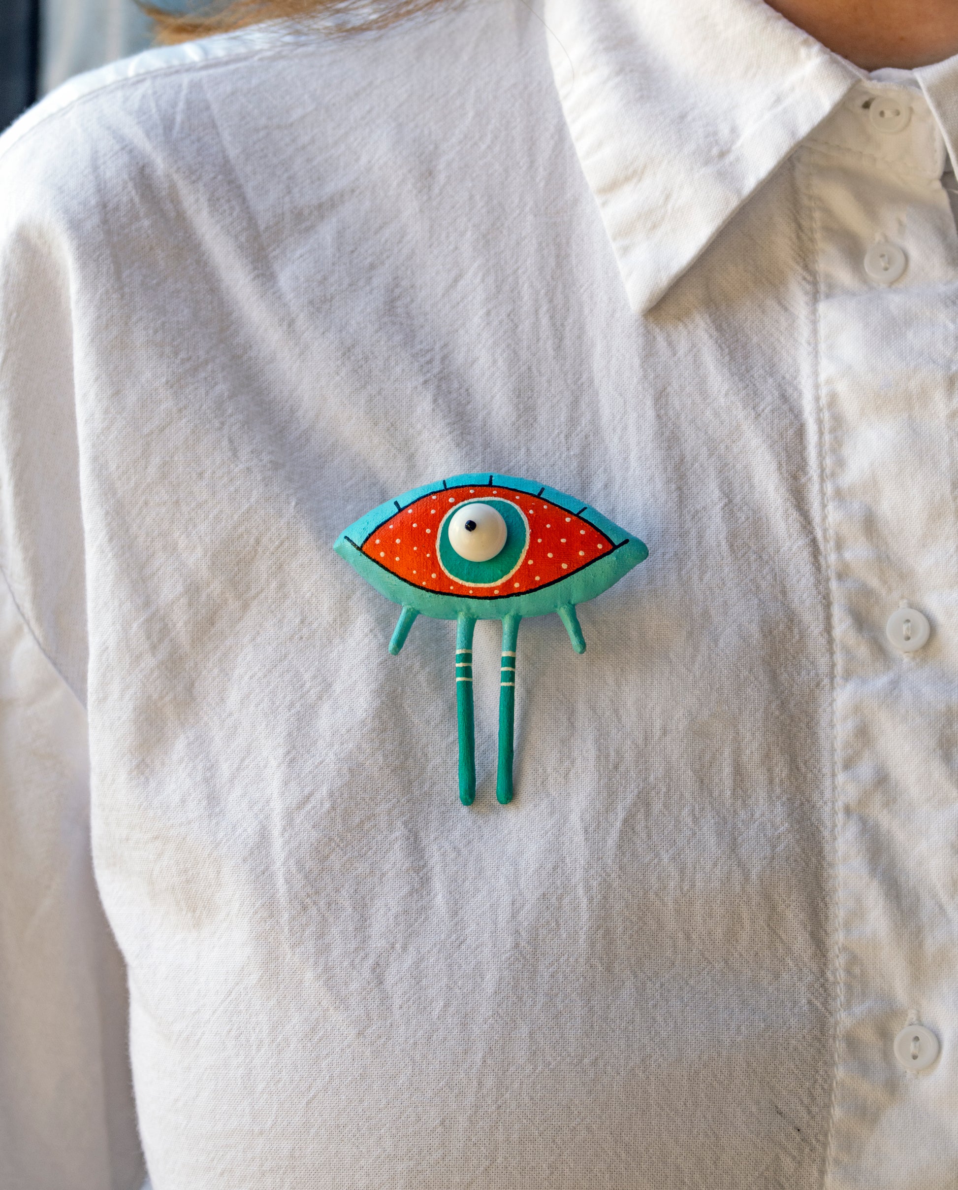 Cheerful Eye brooch was made and painted by hand and with love ❤️