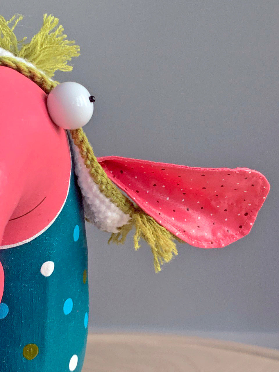 Handmade interior toy Elephant. Painted textile interior soft sculpture for home decor