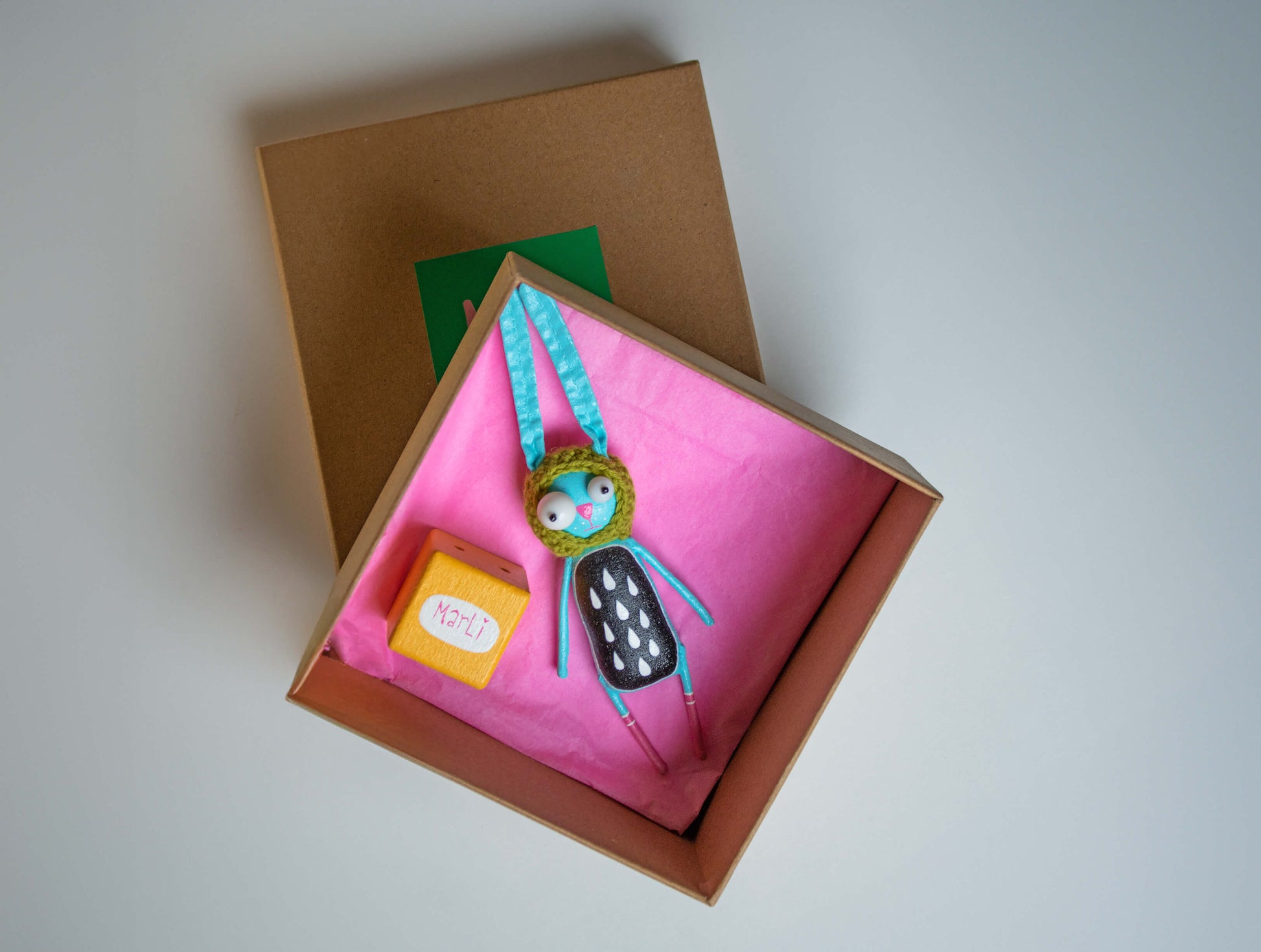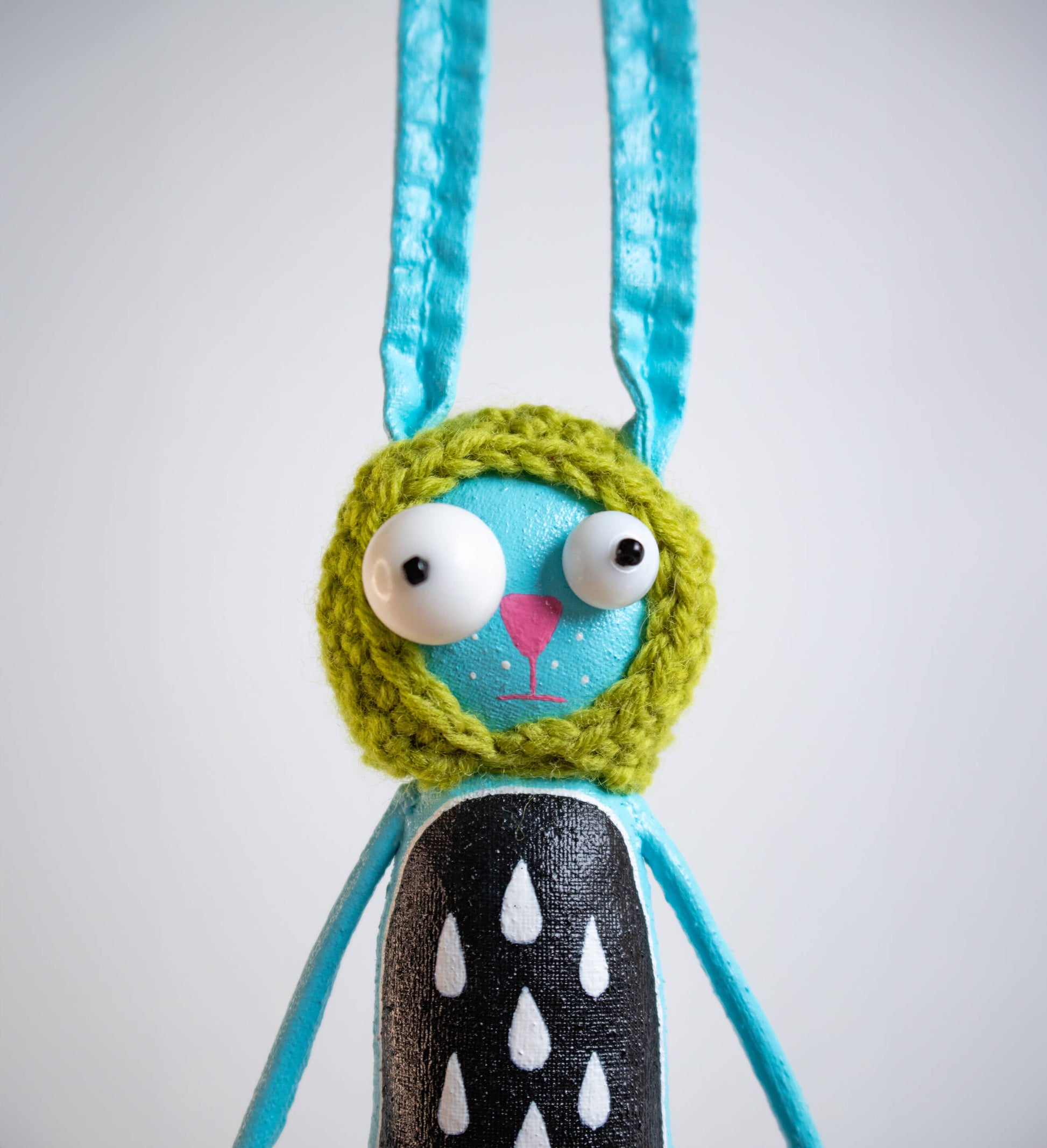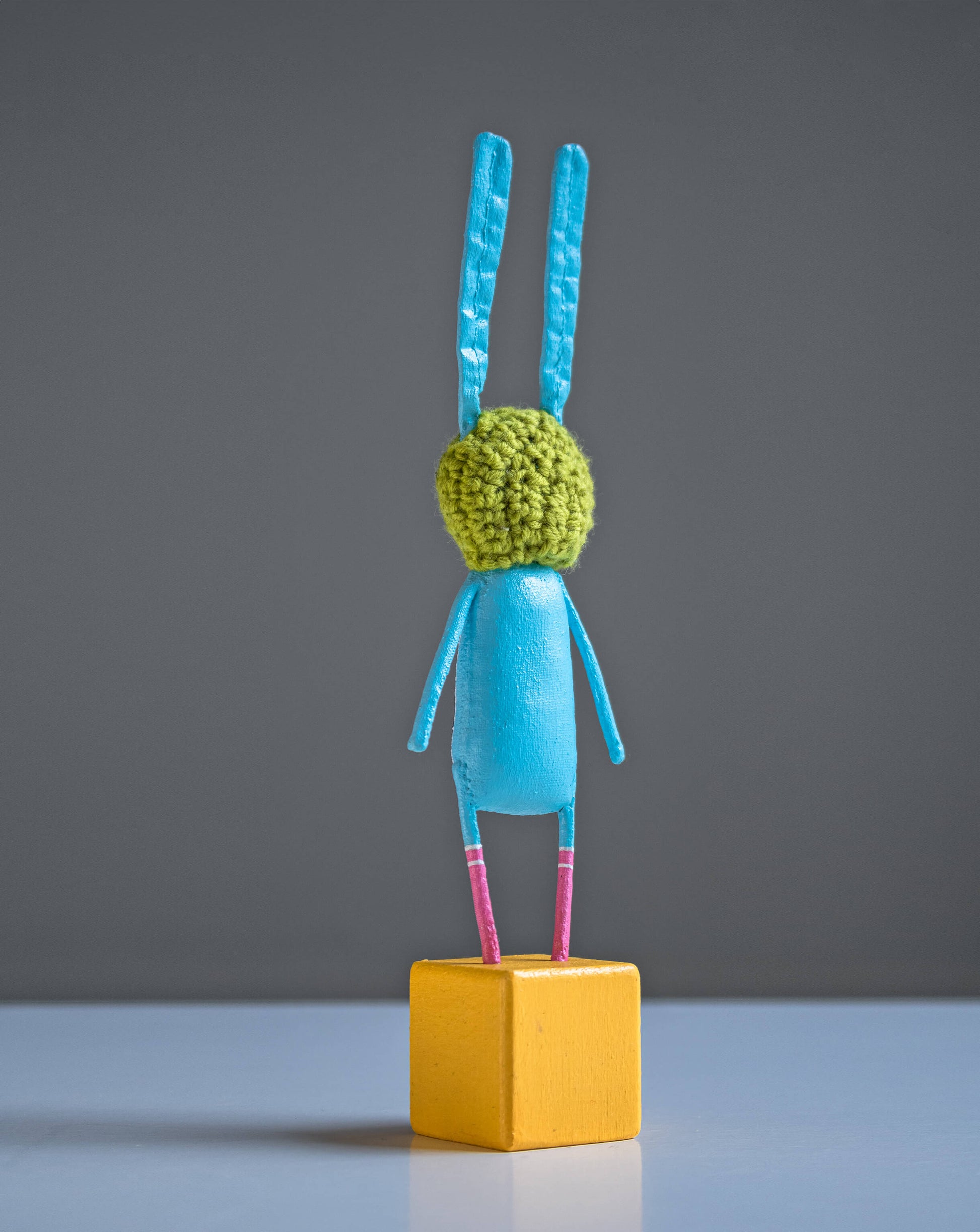 Ryan the bunny comes with his own wooden stand, allowing him to stand securely anywhere and bring you endless joy.