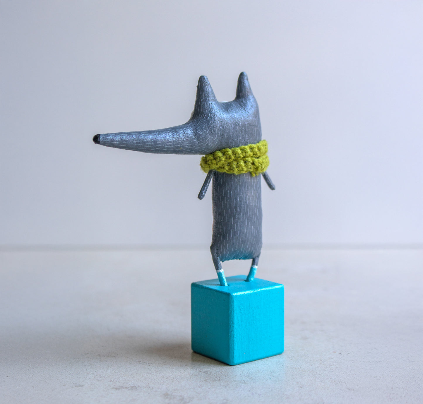 Maiky the Festive Wolf ,Handcrafted Collectible Interior Sculpture by Marlitoyart