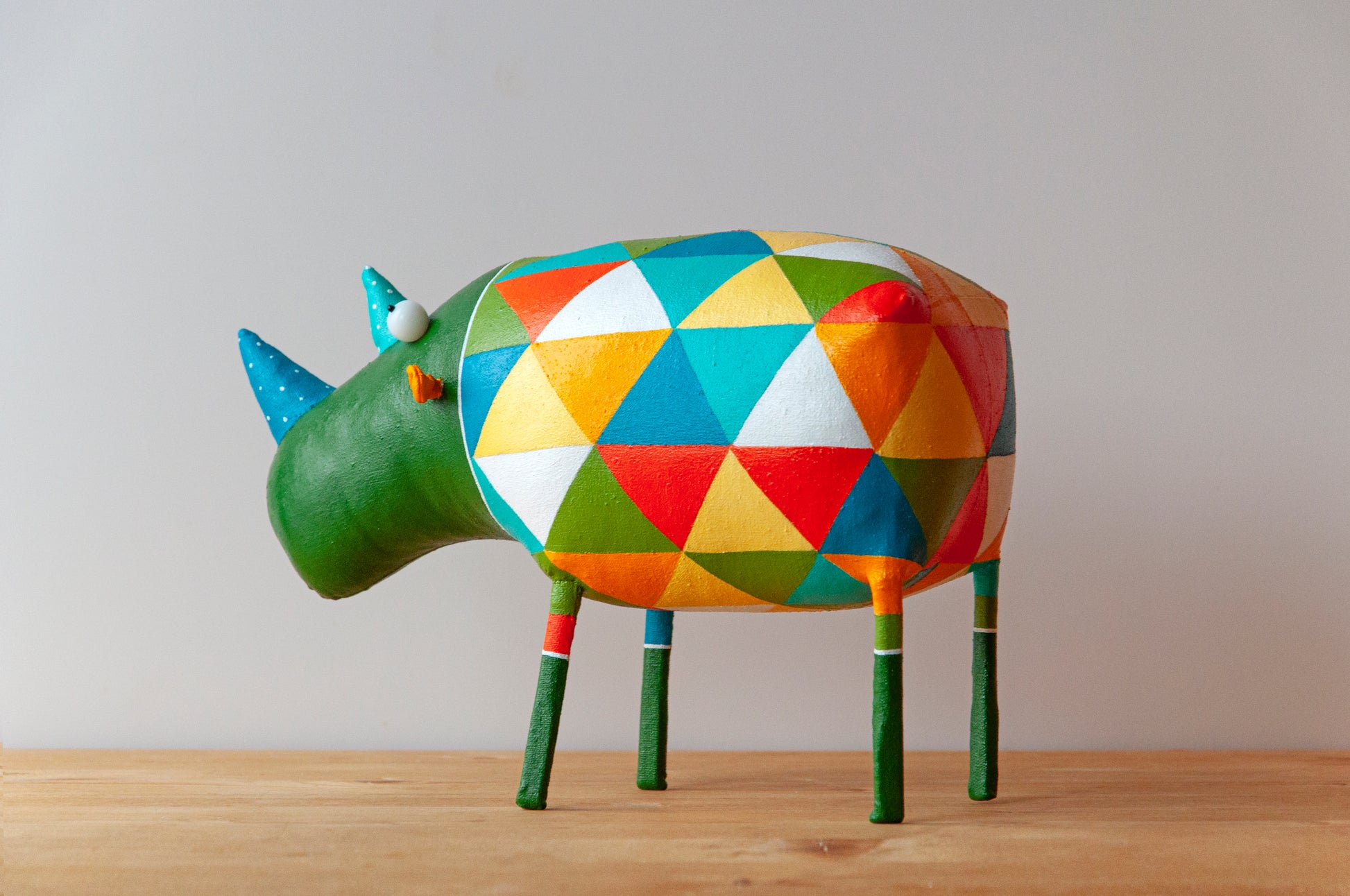 Handmade Pet Rhino Interior Sculpture - Art for Home | Marlitoyart